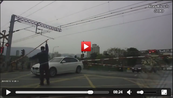 This stupid ass, so ******* worried about scratching his BMW on a ******* barber shop pole, he would rather get hit by a train. Thank god that man was there to save his dumb ass.
