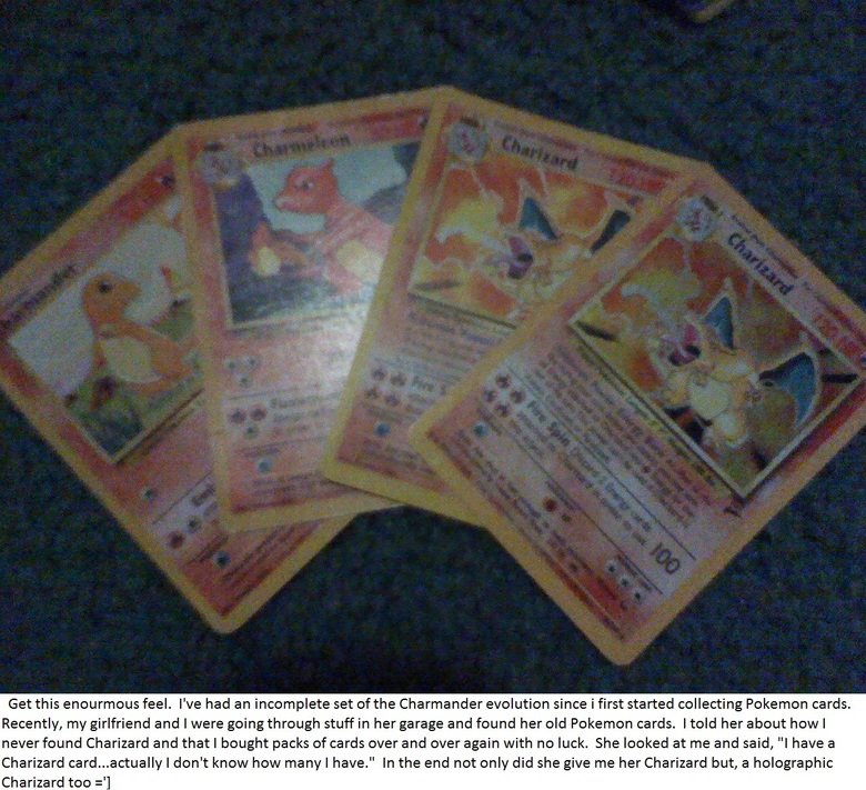 never faund Charizard and that I Iweight packs ["dii cards ever and ever again with itm,' luck. She leeked at me and said, " have a