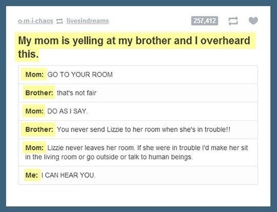 Mom: Lizzie never her room. it she were in trouble M maize her sit