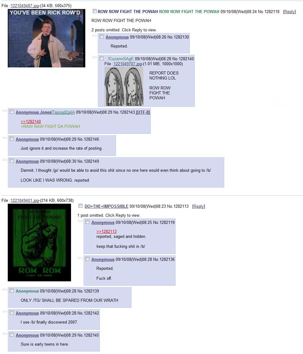 RAW RAW Fight the powa ~ /v/ rage flash Flag joekerr Channel: funny (See more...) next random - Fav Favorite Comment ✖ Top NextComment Enjoy (Enlarge) knowyourmeme.com/memes/row-row-fight-the-powah next Tags: 4Chan | v | b | banhammer | console | moot +33 Views: 4970 Favorited: 8 Submitted: 07/04/2015 Share On Facebook -Favorite +Favorite Unsub from joekerr Subscribe to joekerr Subscribe to funny Unsub from funny Download