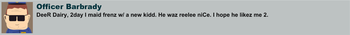 I feel so bad for Officer Barbrady in this Episode Man. I was even talking to my brother how I haven't seen them Working with the current Police Force when I saw him on the a Street Corner in the stick of Truth.