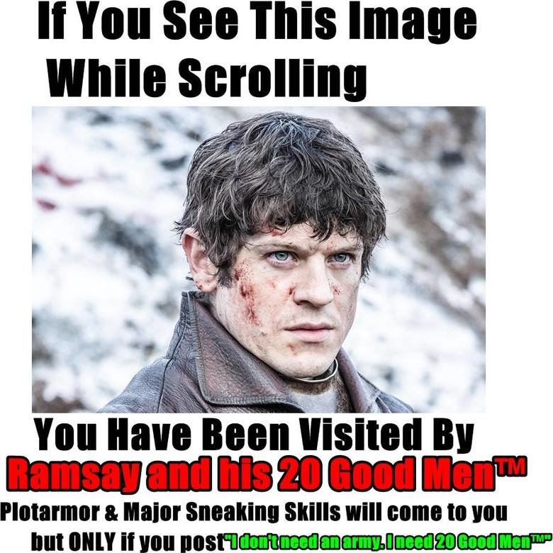 20 Good Men Flag fappafappafap Channel: gameofthrones (See more...) next random - Fav Favorite Comment ✖ Top NextComment (Enlarge) I don't need an army, I need 20 good men. next Tags: game of thrones | ramsay | meme You see This Image WING lite tll, Mail]! SHIN will BOMB tta Will but ONLY if you BUSH alil t ... +4 Views: 1980 Favorited: 1 Submitted: 06/30/2015 Share On Facebook -Favorite +Favorite Unsub from fappafappafap Subscribe to fappafappafap Subscribe to gameofthrones Unsub from gameofthrones