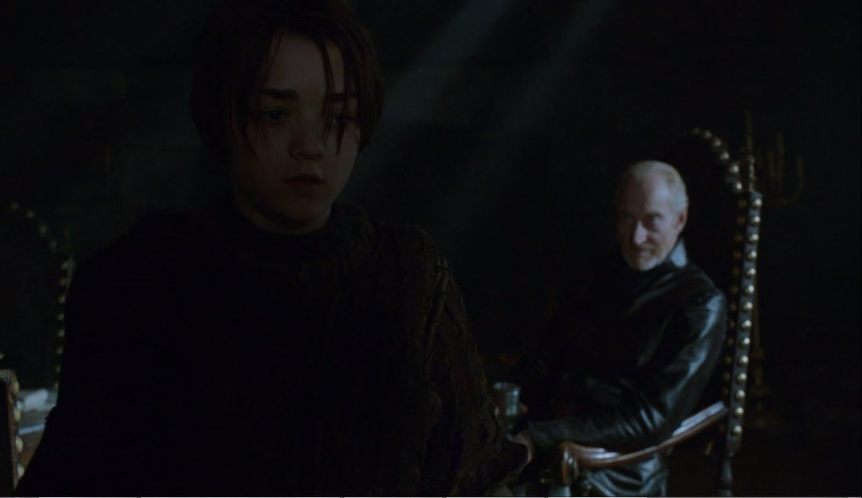 In the books, Arya becomes the cup bearer for Roose Bolton at Harrenhal, not Tywin Lannister.