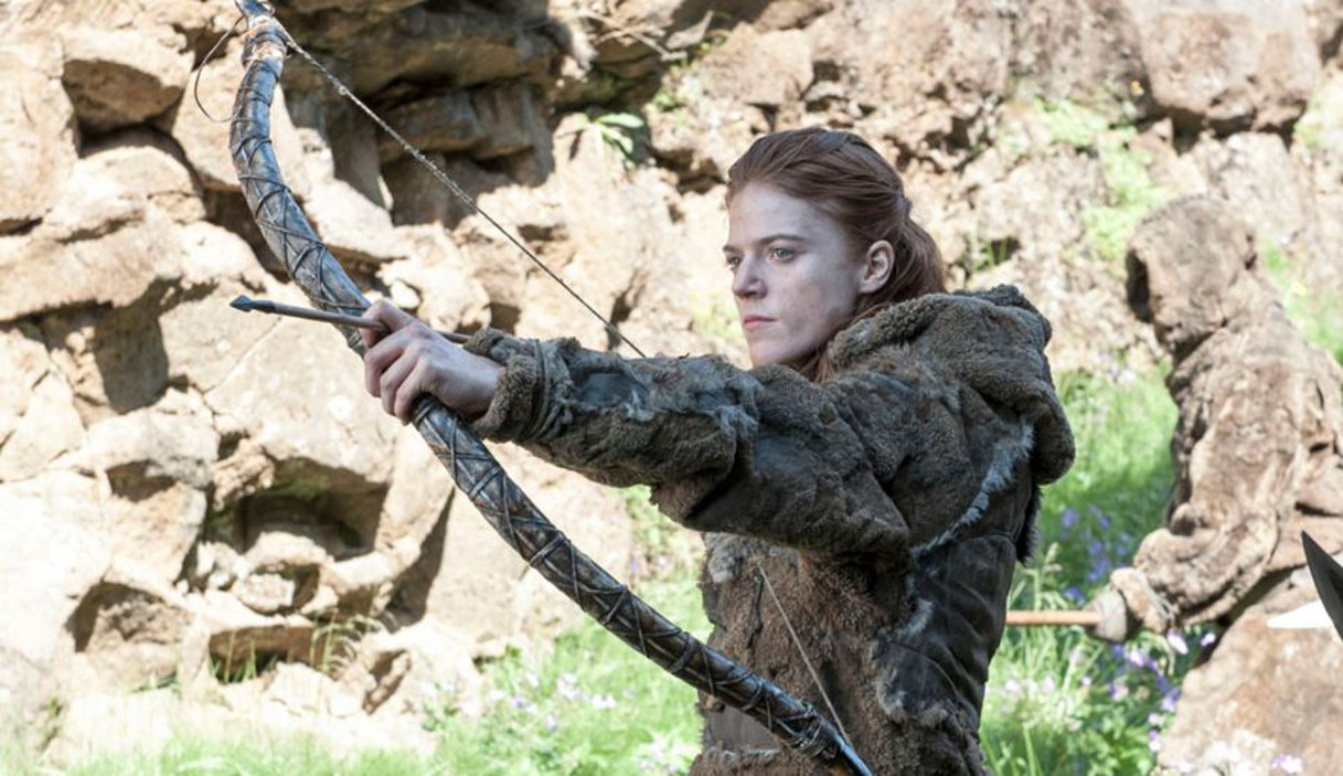 The producers had a placard attached to the handle of the bow Rose Leslie used for filming, it said “Kissed by fire”. The producers gave it her after filming her last scene.