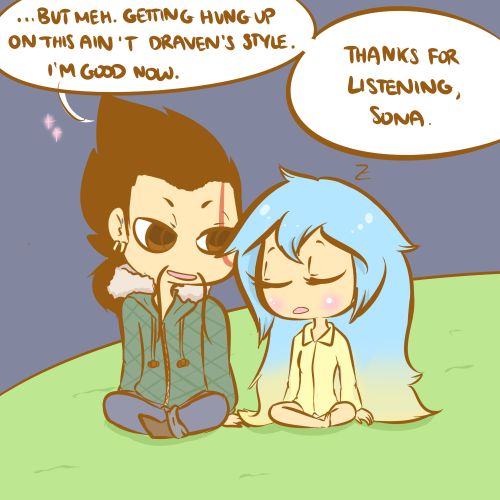 Then draven shows up and shows her he learned sign language so that they could communicate and wouldnt suck in lane anymore.