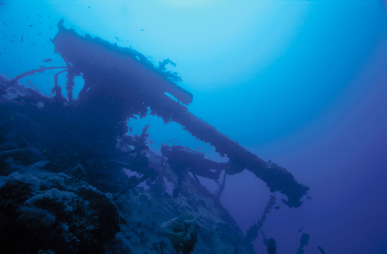 It contains a large amount of sunken Japanese supply ships and subs from WW2. en.wikipedia.org/wiki/Chuuk_Lagoon