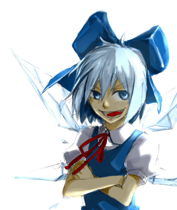 Come to think of it, Touhou fairies just respawn after death. So she's functionally immortal. And she's strong enough offensively to give Marisa a hard time, with solid defense, as well. Tough enough to fight inside a nuclear reactor against a nuclear chicken, at least. If she weren't so stupid and easily amused, she might actually would be among the strongest.