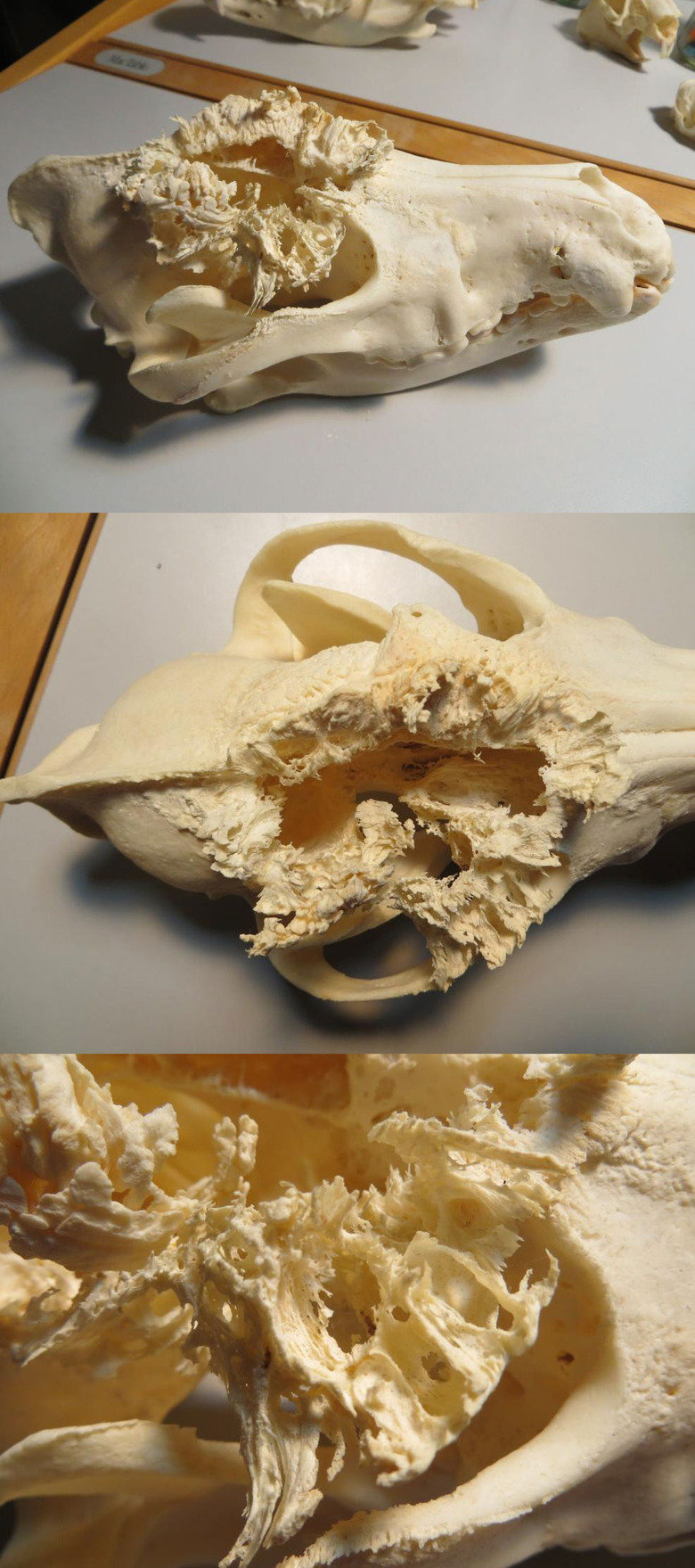 Bone pathology Flag vitunhipit Channel: morbid-channel (See more...) next random - Fav Favorite Comment ✖ Top NextComment (Enlarge) A wolf skull with bone pathology caused by a tumor. next Tags: bone pathology | skull | Wolf | tumor +51 Views: 7504 Favorited: 0 Submitted: 01/28/2015 Share On Facebook -Favorite +Favorite Unsub from vitunhipit Subscribe to vitunhipit Subscribe to morbid-channel Unsub from morbid-channel