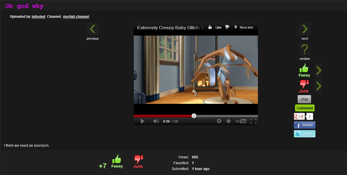 Oh god why Flag infested Channel: morbid-channel (See more...) next random - Fav Favorite Comment ✖ Top NextComment I think we need an exorcism. next Tags: oh god +59 Views: 6114 Favorited: 4 Submitted: 06/15/2012 Share On Facebook -Favorite +Favorite Unsub from infested Subscribe to infested Subscribe to morbid-channel Unsub from morbid-channel