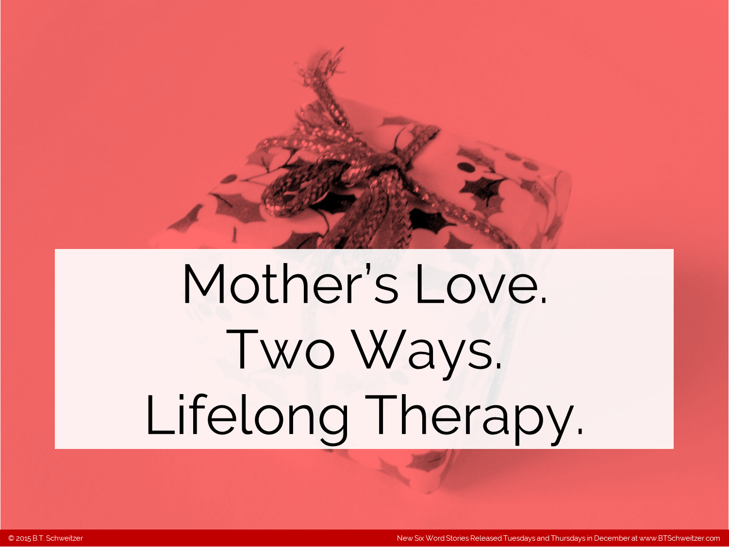 Remember I'm hosting a monthly writing contest on my website that ends this weekend. If you haven't entered please consider it here: www.btschweitzer.com/contests/contestdecember2015/