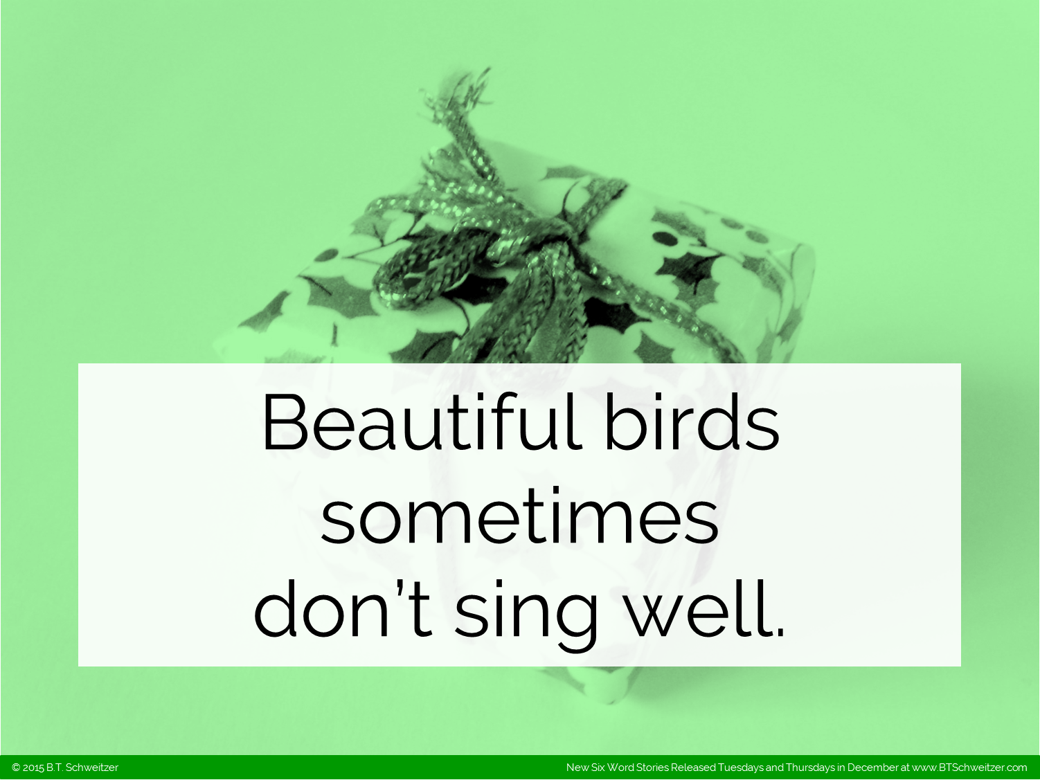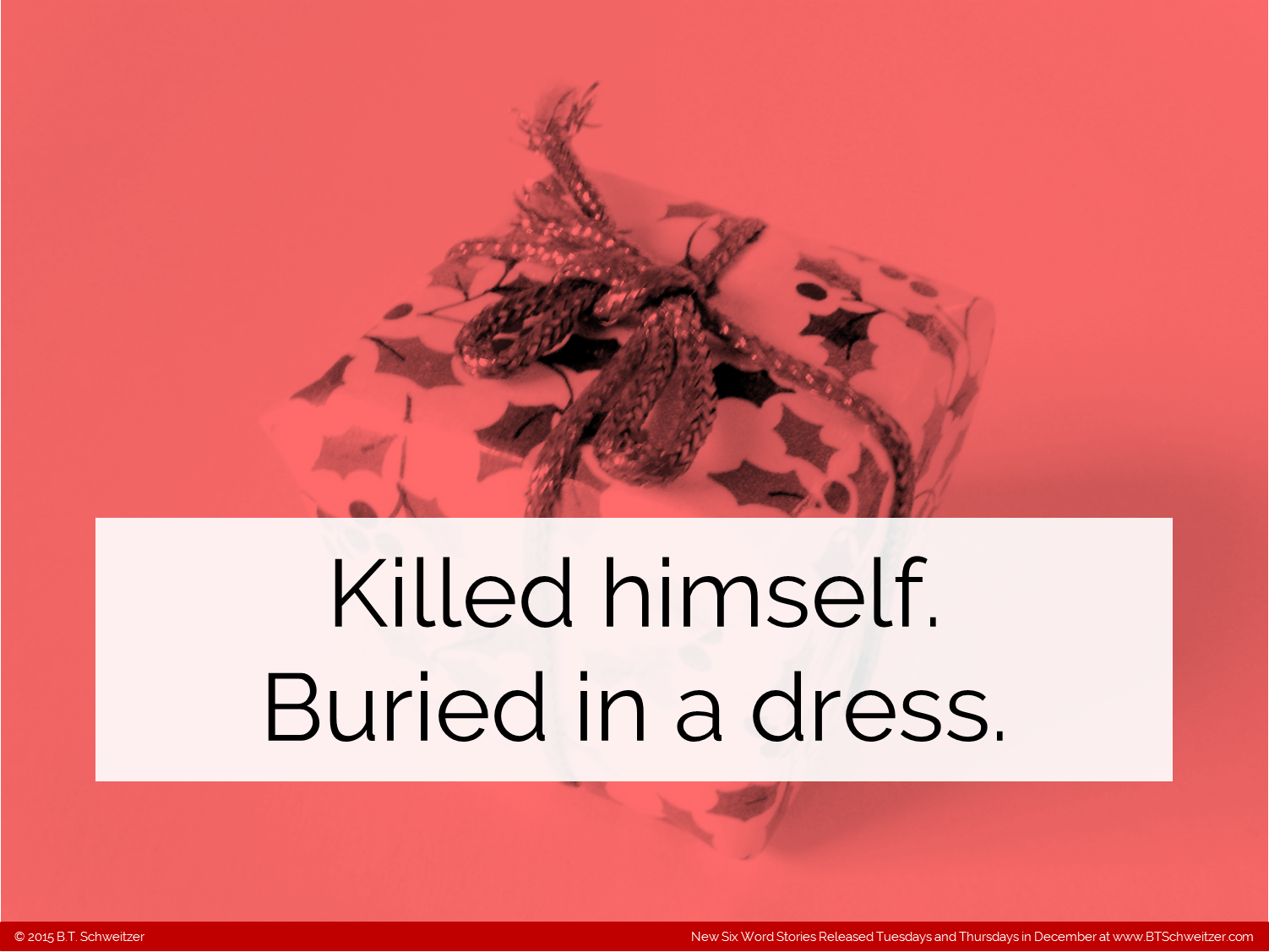 The last comp was super successful - if this does as well I think I might keep these up past the end of December. As always I encourage feedback as a way to improve. Remember I'm hosting a monthly writing contest on my website that ends this weekend!!! If you haven't entered please consider it here: www.btschweitzer.com/contests/contestdecember2015/