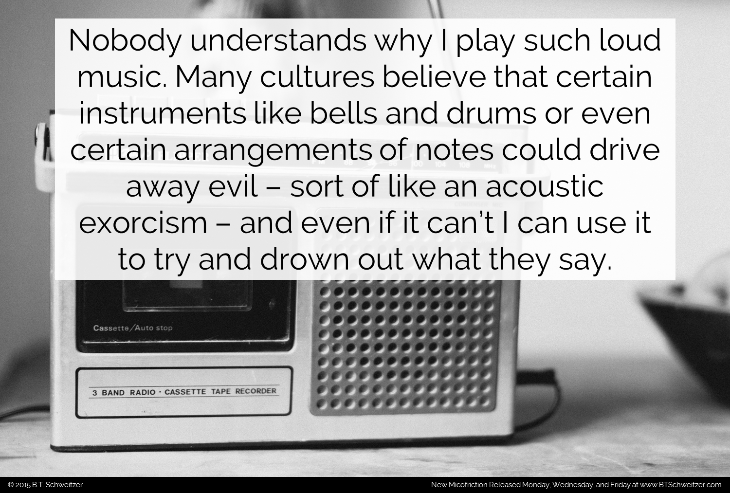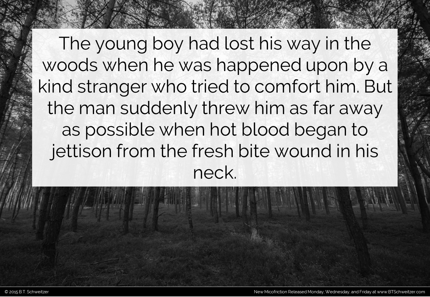 Here's comp #12. I'm happy to announce that I have some big plans for the month of October including two comps per week on Wednesday and Friday starting next week. I'm also hosting a writing contest. Here's the link: www.btschweitzer.com/contests/contestoctober2015/. Still no news from the magazines I've entered but not all hope is lost yet. As always I'm open to feedback and suggestions how to improve my writing.