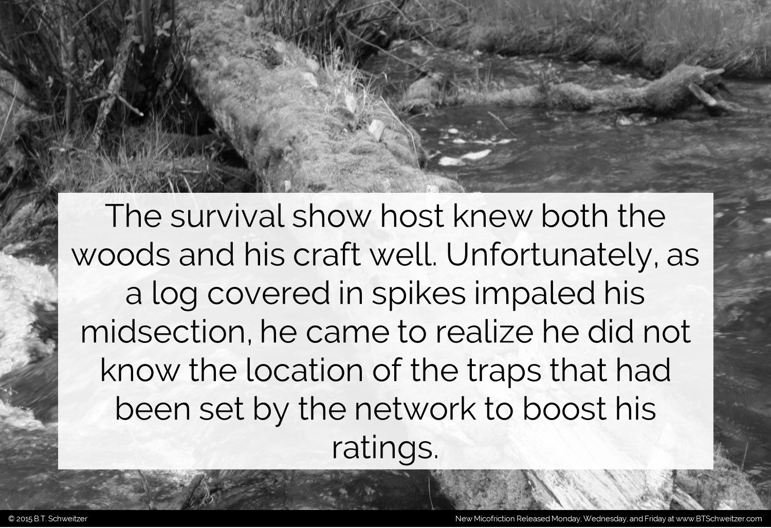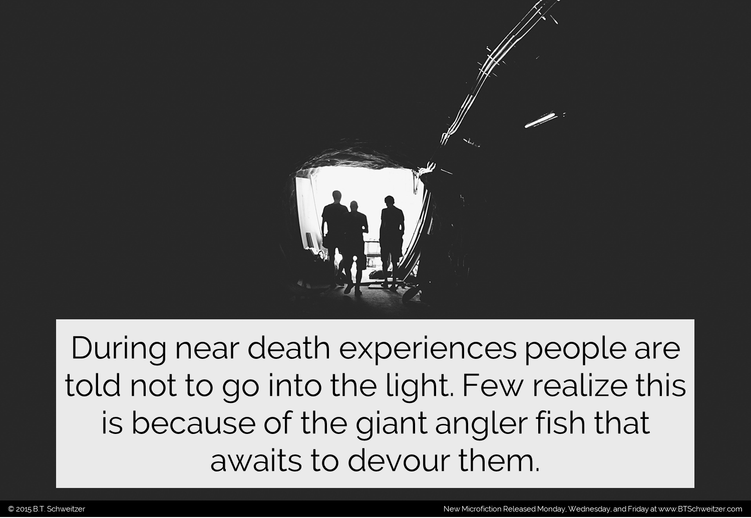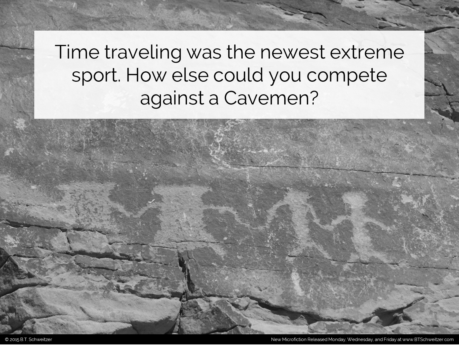 Wow! My 2nd Six Word Story comp was popular! Let's keep that momentum going. As always please let me know what you think, how I can improve, and what you would like to see more of. And remember I'm hosting a monthly writing contest that ends THIS weekend. You can enter here: www.btschweitzer.com/contests/contestdecember2015/