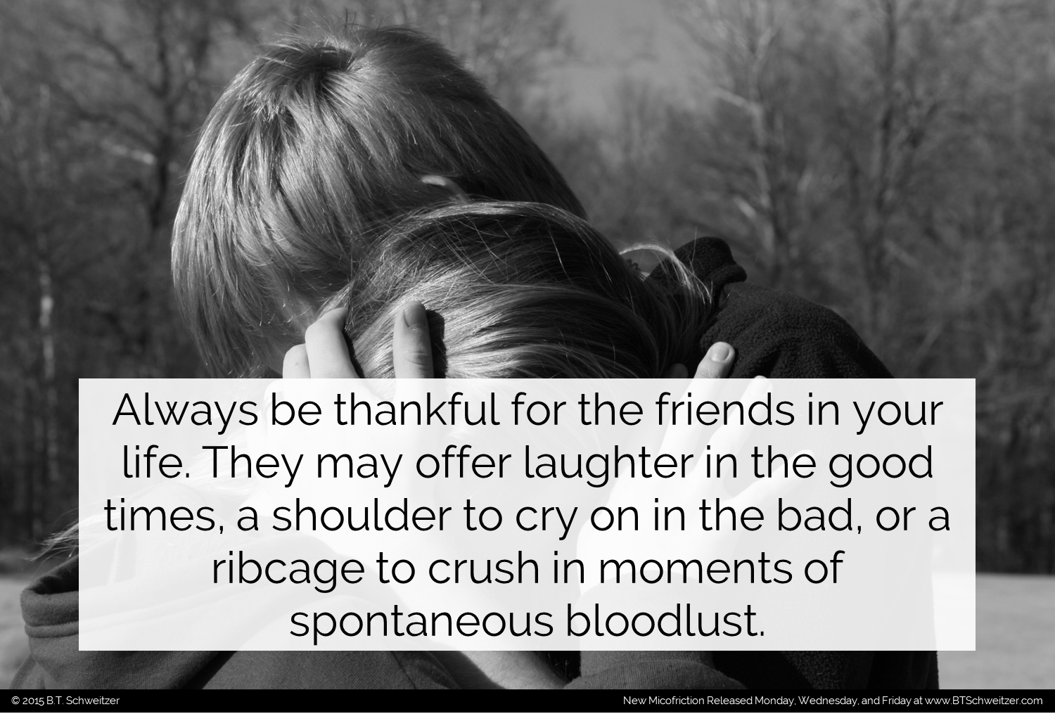 It's tomorrow!!!!!!!! I'll be releasing an extra comp tomorrow to celebrate and we've been announcing winners of my writing contest today and tomorrow on my site. November's contest is already live (www.btschweitzer.com/contests/contestnovember2015/) so consider entering!
