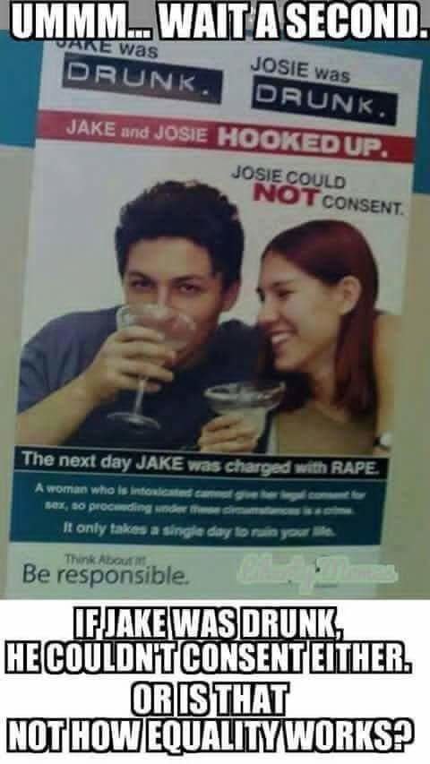 Seriously though if a girl ever gets me drunk for sex, I'm going to charge for rape first. See how people take the news about that.