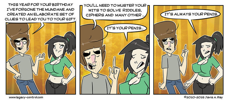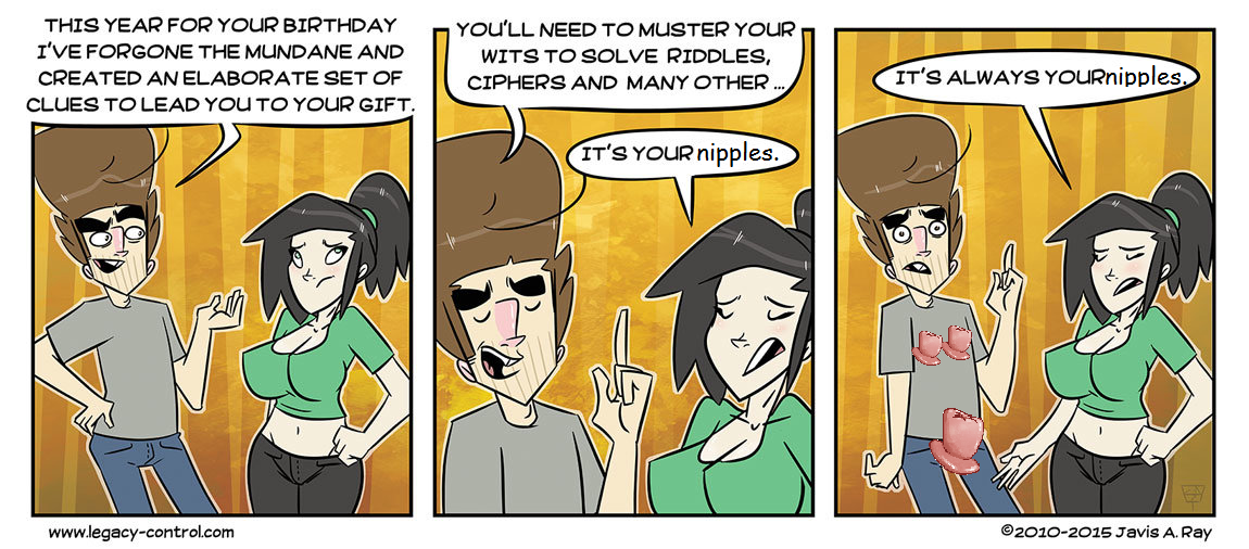 along with his hair and her cam-toe. And his nose annoys the **** outta me. And his nipples. I don't like these comics at all. The art style makes me nervous and suspicious