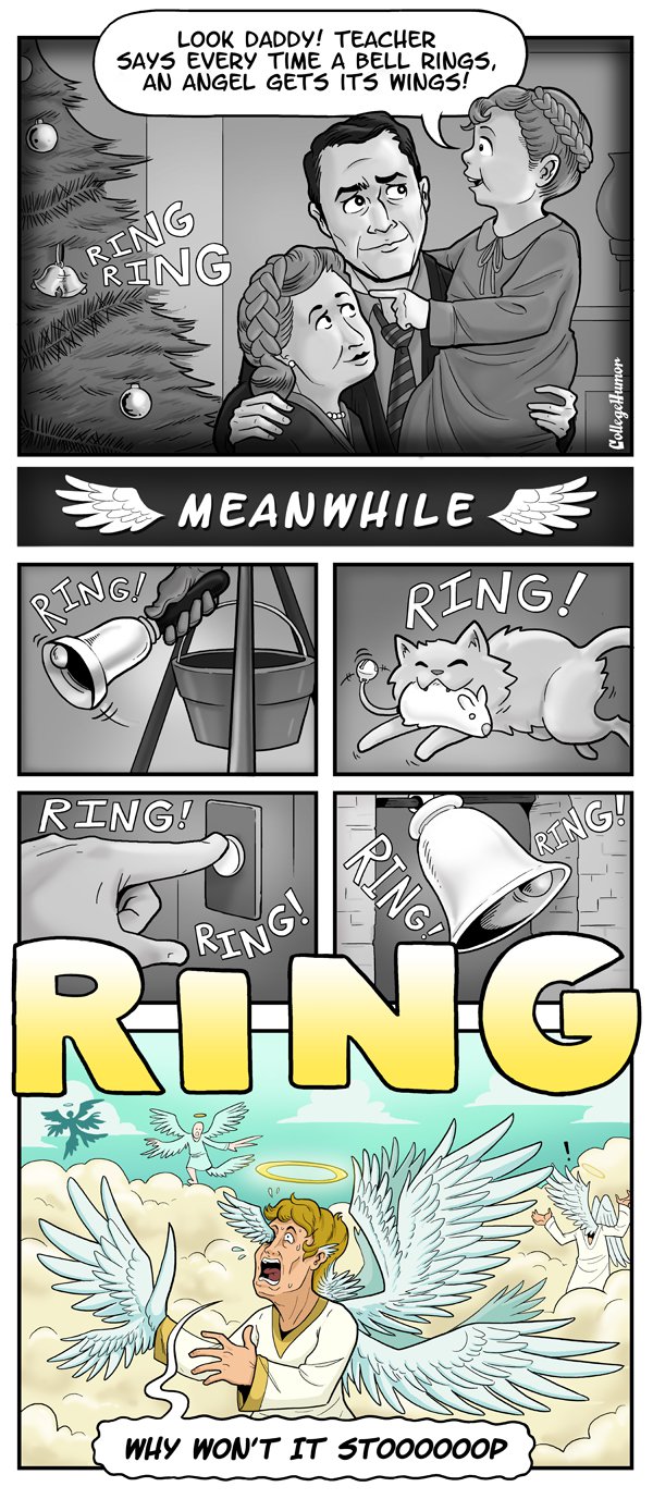 Ahahaha man,this reminded me of that one girl i met at a costume party who was dressed as an angel,she was kinda drunk so she didn't really mind me talking with her,she found me funny and we had another drink and made love at her place,when i left i heard something about her setting fire to herself inside her house cause she was sacrificing her self to satan or something,man those were some good times...Welp time to go look up some angel porn.