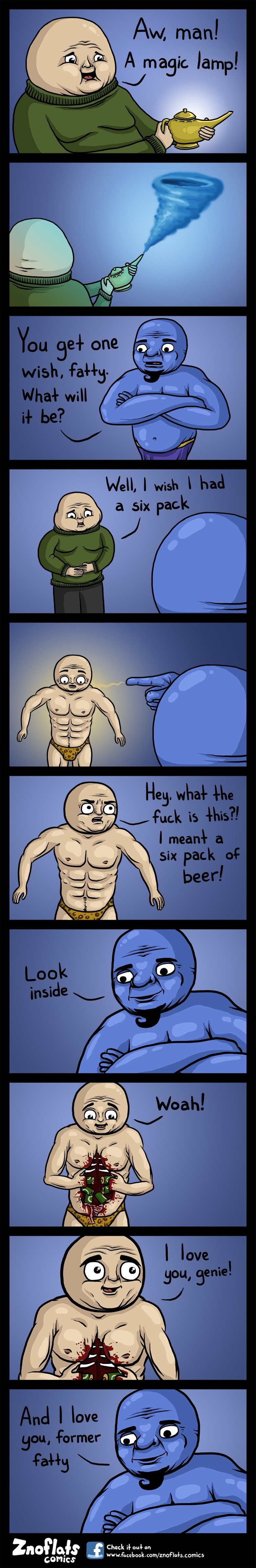 By wishing each wish be considered separately, the genie cannot twist any wishes around. The absolute value of any number is its distance from 0, which means that by taking the absolute value of a negative number, it becomes positive ex: abs. value of -2, or |-2|, equals 2 . By wishing for a thousand FEWER wishes, she creates a loophole in the genie's rule by having |-1000| wishes, thereby giving her 1000 wishes.