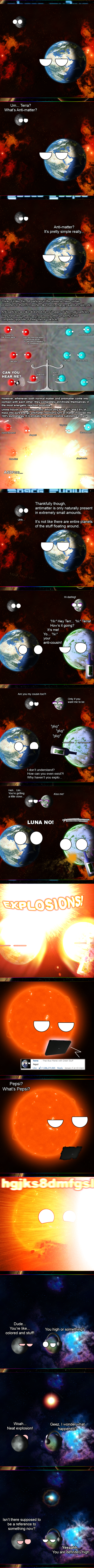 Interesting fact: There is a ring of antimatter around the Earth that constantly replenishes itself. Anti-matter circles around most of the planets actually.