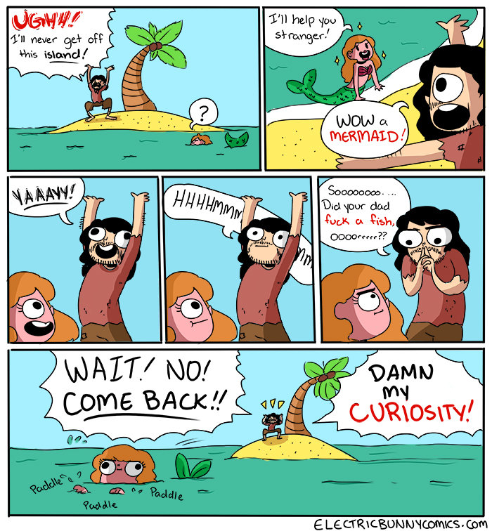 How the **** would a Mermaid get him off the island?