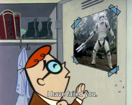 All through the movie I was waiting for him to get into a gunfight, since that's what Troopers are supposed to be good at. he managed to lose like, two blasters over the course of the film without firing them once.
