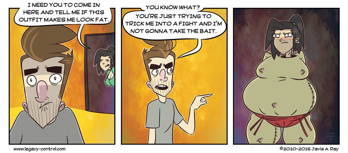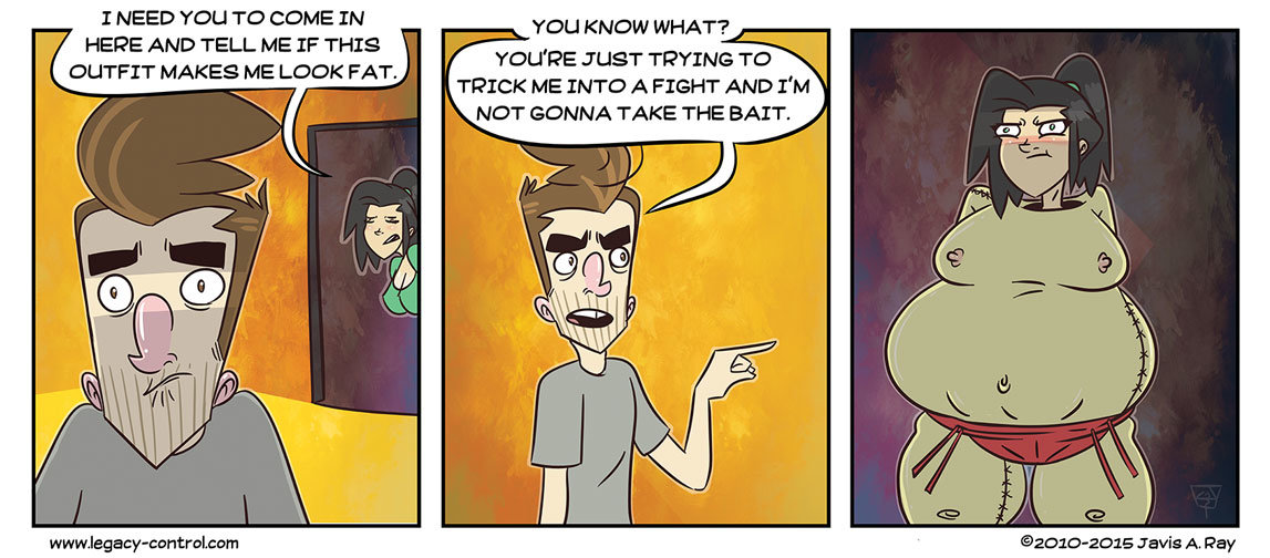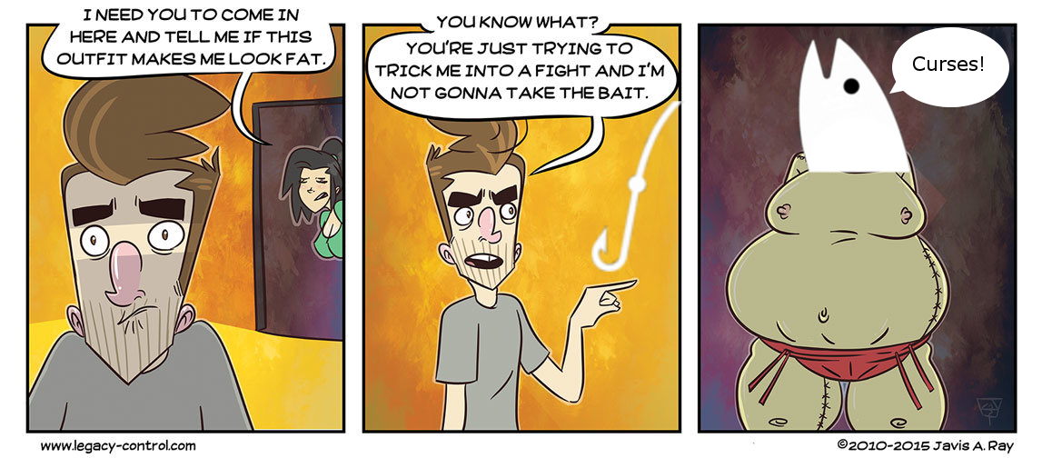 DO I look Fat In This. You can see the rest of my comics over at www.legacy-control.com/ That’s right…IT’S A TRAP! Also, trying out a new nose on Aggro, whatcha