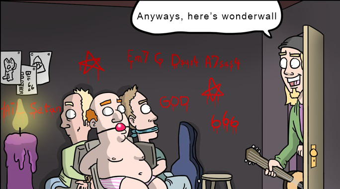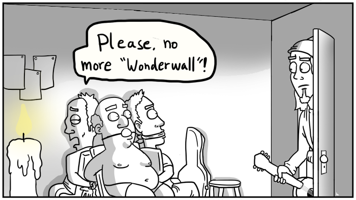 Dude, the joke is already there. The 4 chords on the wall are the 4 first chords in wonderwall.