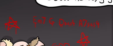 well the chords of the song are written on the wall in the last panel, so there's that
