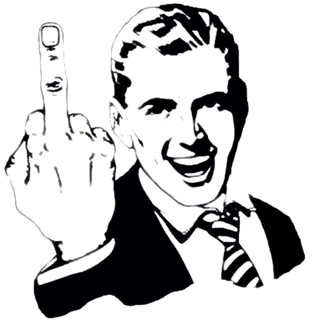you know that picture is kinda weird why would anyone smile while they giving someone the bird hell i would have to be at least a little mad to do that but smiling? that's creapy as **** oh god