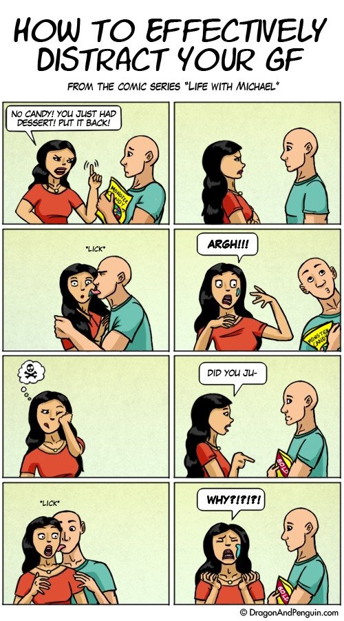 as if any women anywhere would let you have the candy.... we all know the woman would be holding it and you would be asking if you could have some please