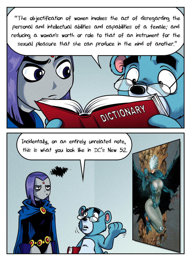I'm not a fan of these comics, nor do I really hate them, but I've seen a trend far too common where comic artists will make pages like this in an attempt to make themselves seem more mature and, for lack of a better term, "hater-proof." It's a strawman people like Andrew Dobson have pulled out WAY too much.