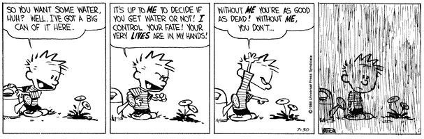 I thought of this today when I came out of the bathroom and tripped upon one such plant that I graciously allow to live by bringing it in to my domicile during the cold months. I hope this comic serves as a warning to it.