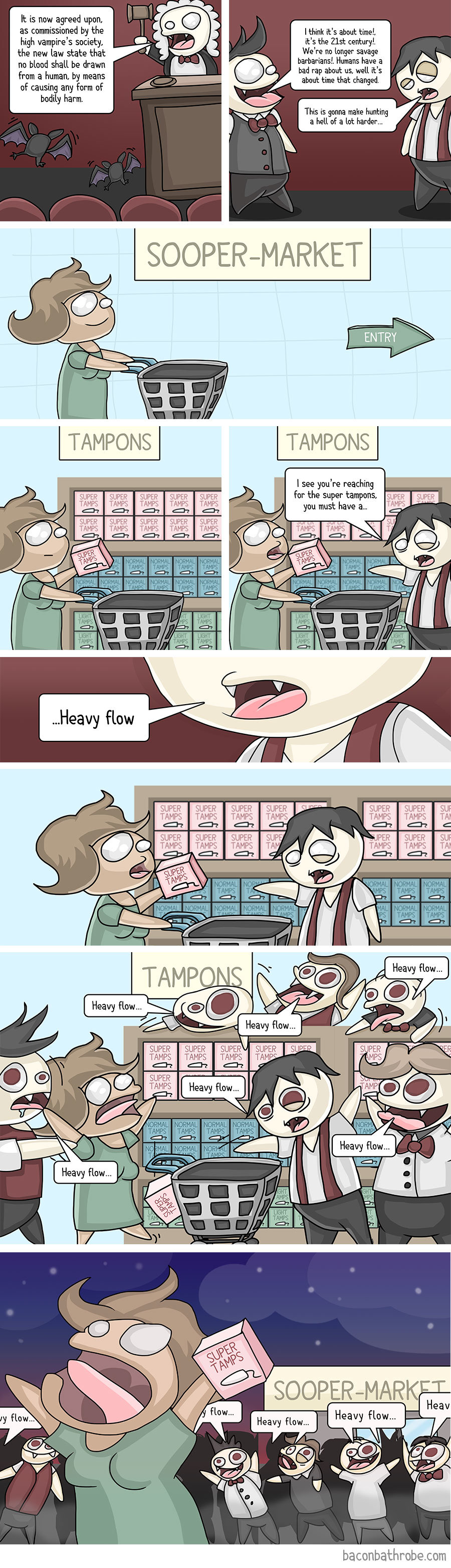 And that is why I hate getting my period!, haha actually hate is a very strong word, more like it's a major inconvenience, especially when you have a whole band of blood thirsty vampires on your tail!. Is that what you would call a group of vampires?…a school of vampires? a heard?.