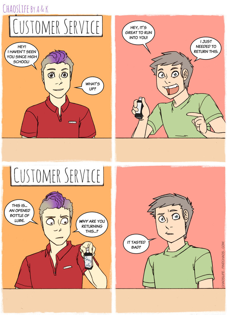 I misinterpreted which shop the last scenario was happening in, and got real ******* confused over why there were strapons in a clothing and food store.