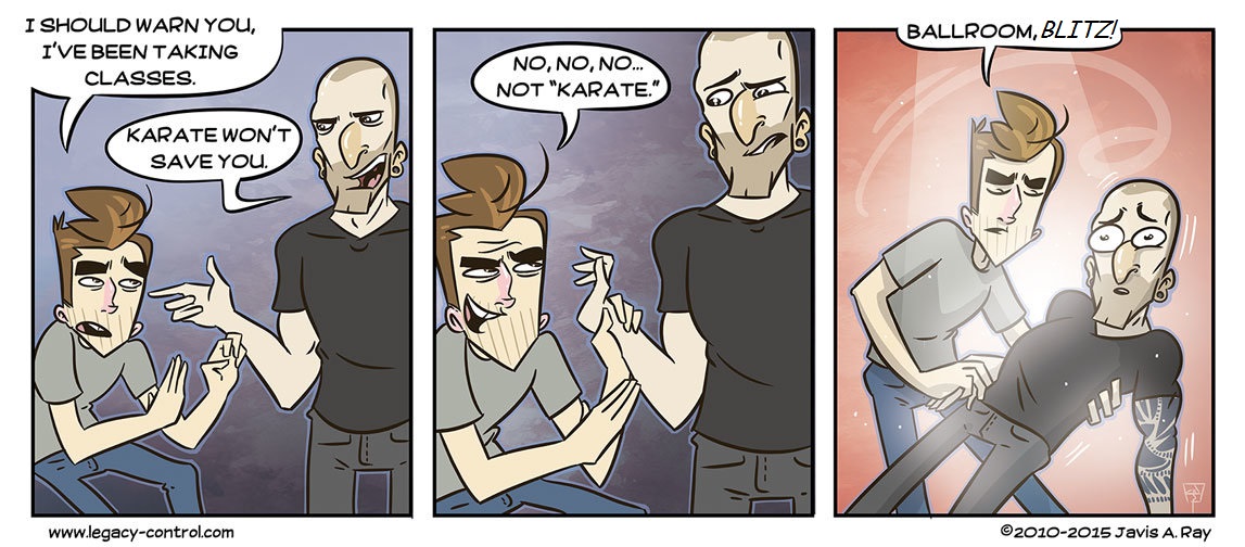 Think about it. Ballroom dancers are fit, fast and have the ability ti throw bodies (theirs and others) all over the dance floor. It’s the perfect martial art!