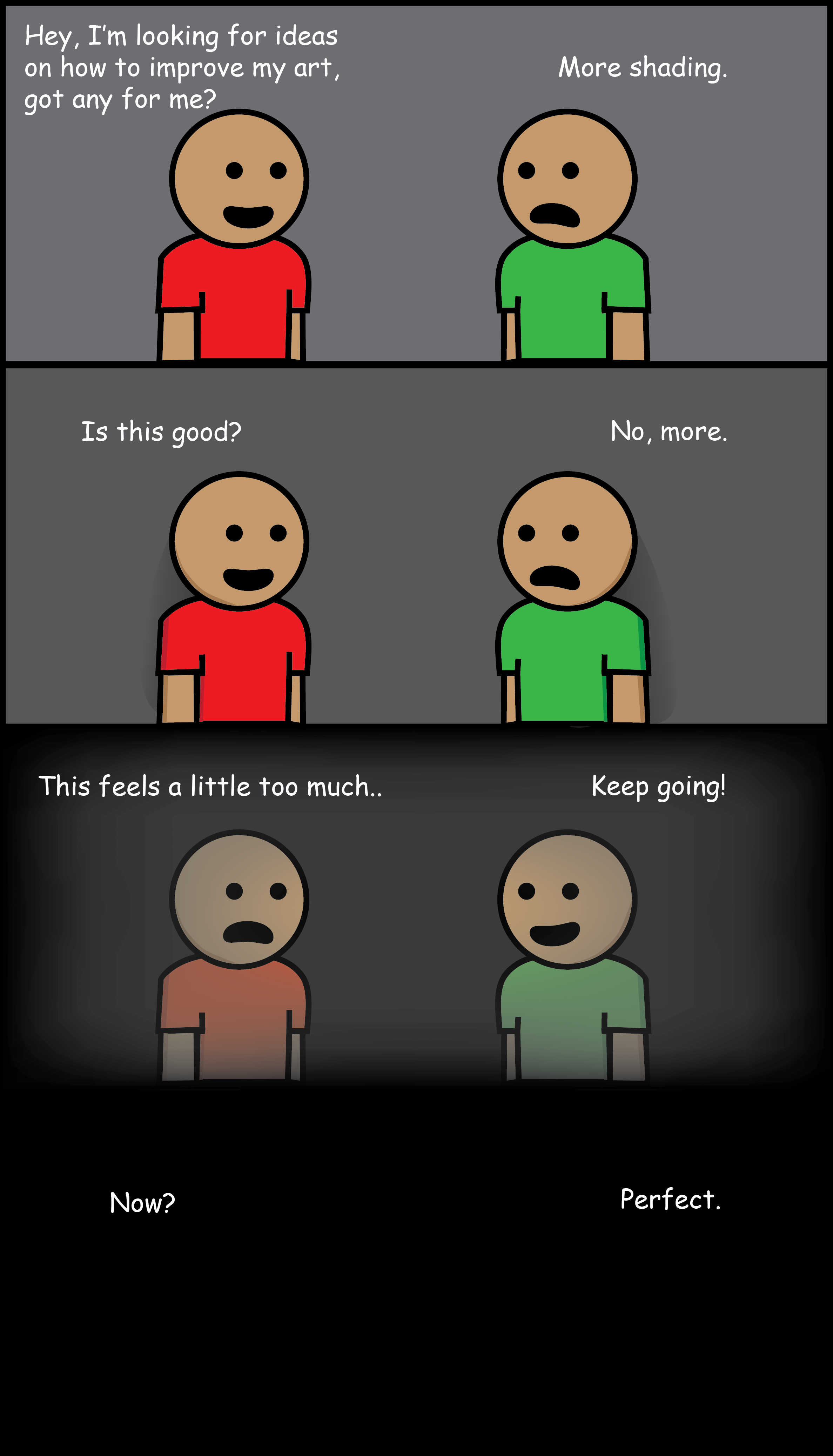 I've lost count on how many atrociously bad artists I've seen that do the shadng right. I don't know if it takes no effort since it's always something I've had issues with, but they should've spent the time they studied shading to actually practice drawing. Why does everybody make it look so easy