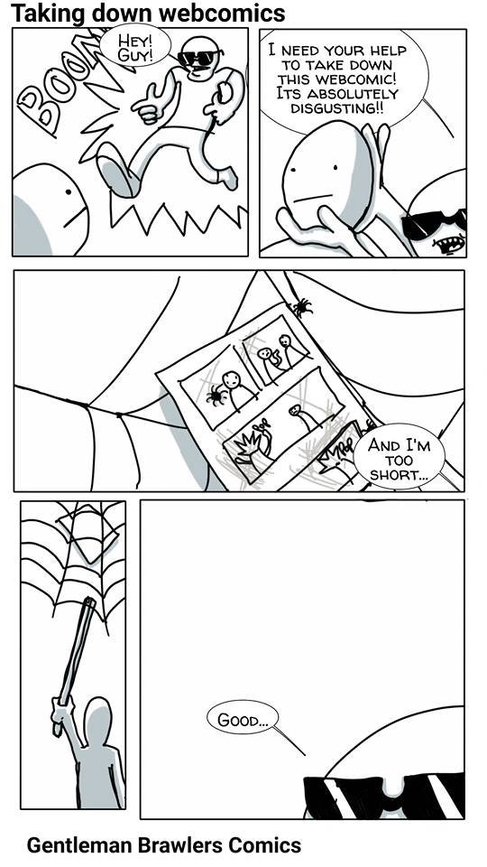 Taking down webcomics Flag gentlemanbrawlers Channel: oc-comic-makers (See more...) next random - Fav Favorite Comment ✖ Top NextComment Absolutely ******* disgusting. It's covered with spider eggs and dust. Check out the facebook page. There's another comic on there already. facebook.com/gentlemanbrawlerscomic next Tags: webcomics | gentleman | brawlers | oc comic | OC | comic | web comic | cool dude | Web | Stick I NEED Ytn. Ift HELP TO DOWM Gentleman Brawlers Comics ... +36 Views: 3746 Favorited: 1 Submitted: 09/24/2015 Share On Facebook -Favorite +Favorite Unsub from gentlemanbrawlers Subscribe to gentlemanbrawlers Subscribe to oc-comic-makers Unsub from oc-comic-makers