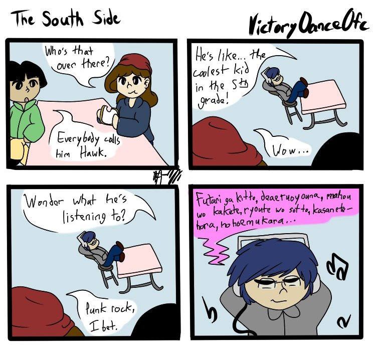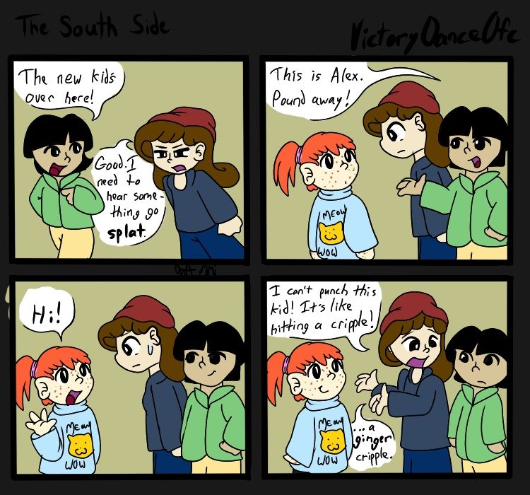 The South Side basically follows six fifth-graders as they cope with living in a quiet mountain town that often has to deal with weird ******** . This comp will just sort of introduce the comic and the six main characters.