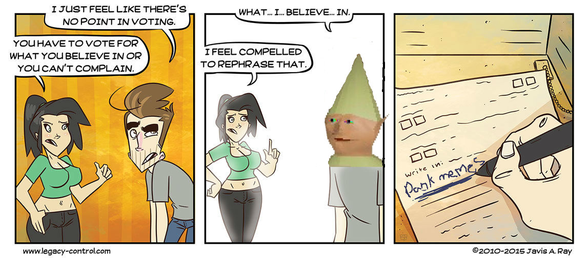 Vote Flag myopicprophet Channel: oc-comic-makers (See more...) next random - Fav Favorite Comment ✖ Top NextComment (Enlarge) You can see the rest of my comics over at www.legacy-control.com/ But seriously, you’ve got to vote. For unicorns. next Tags: Vote | Voting | funny | comic | oc comic | lol | democracy | unicorns I L no POIINT IN EXCITING. - van CAN' T COMPLAIN. Jil ' To REF I “ THAT. ... +1316 Views: 51186 Favorited: 39 Submitted: 11/03/2015 Share On Facebook -Favorite +Favorite Unsub from myopicprophet Subscribe to myopicprophet Subscribe to oc-comic-makers Unsub from oc-comic-makers