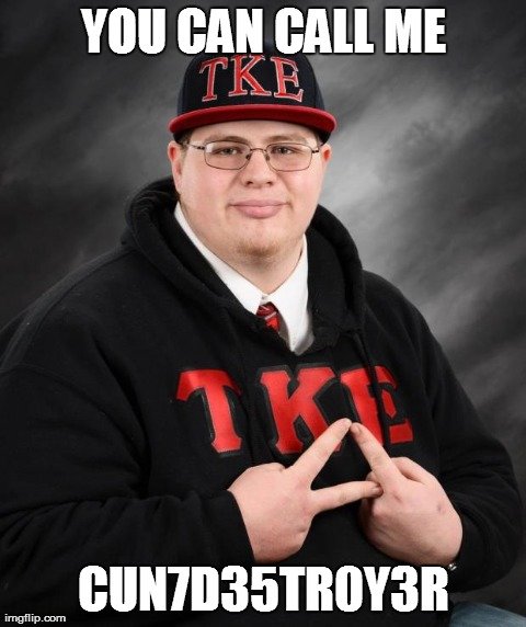 At our colleges in America, we have groups of wealthy and needy boys who decide to call themselves "brothers" because they each pay "fees" each month into a giant fund that gets spent on liquor, party supplies, houses, hookers, and date rape drugs. They are each represented by three greek characters and call themselves "Fraternities" (like because they apparently become fraternal by sleeping in eachother's puke). The main goal of the whole thing is to act like you're a little cooler than any of the other fraternities, and way cooler than anyone not in a fraternity, so by all paying to be best friends with each other you'll always be the coolest people around. As such, they frequently wear around matching t-shirts with three greek letters on them. The fraternities are then represented by "National Chapters;" so for example, there is a "Phi Delta Theta" national board, and then there is a "Phi Delta Theta" at a whole **** ton of Universities across America.
