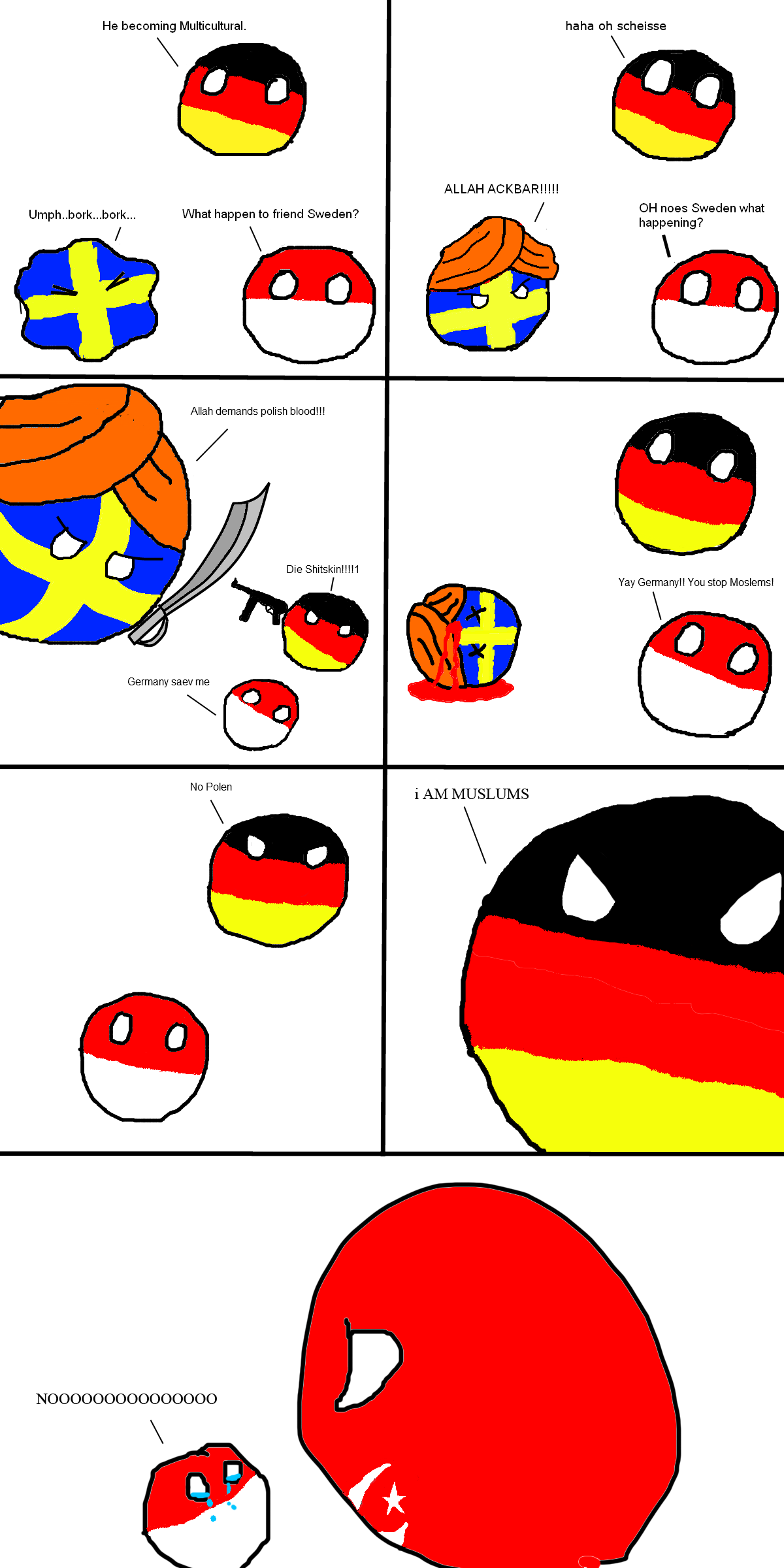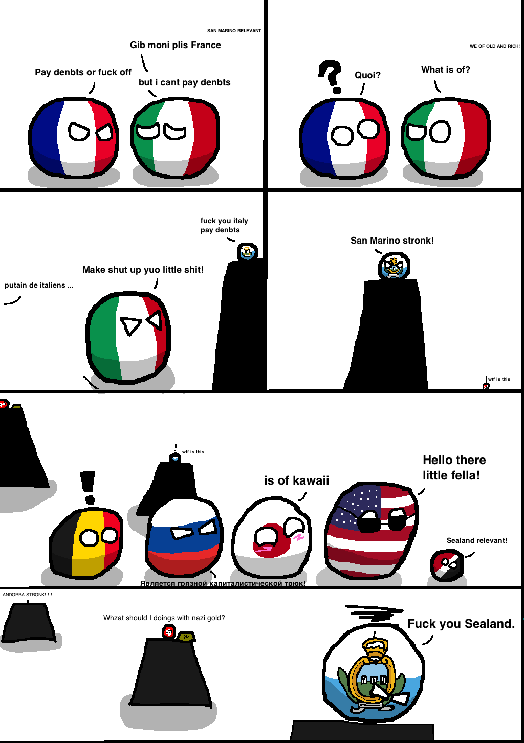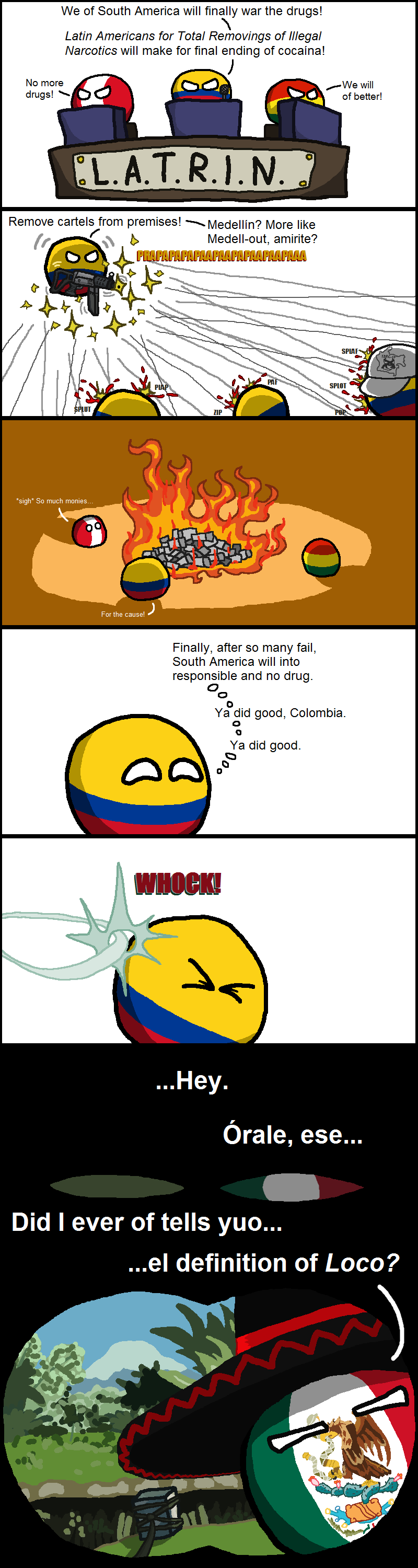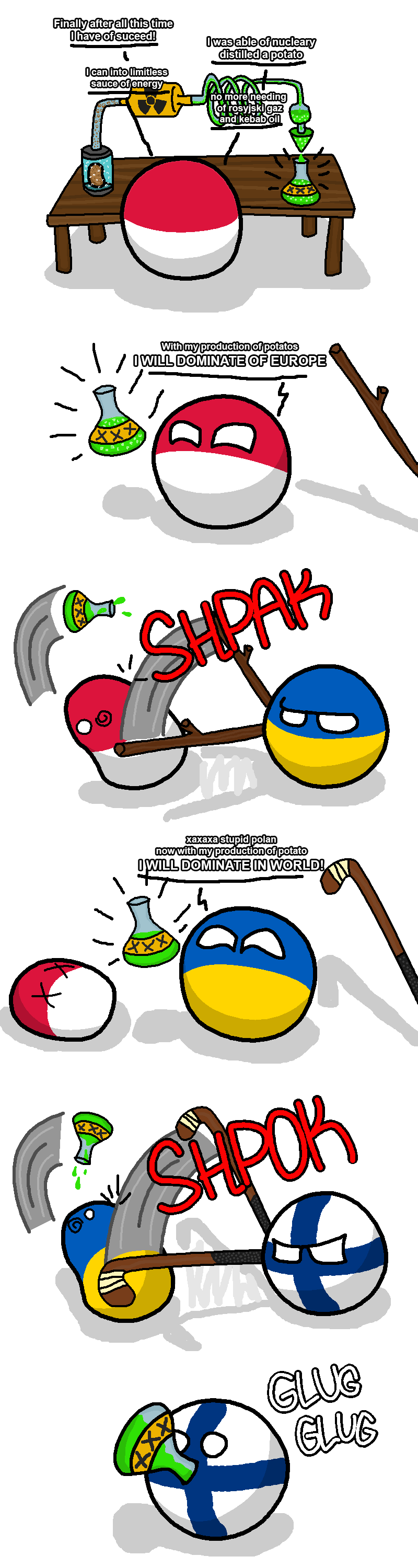 I like these comics because it is basically an unlimited supply of stereotypes/politics/history/etc of countries. Comparing it to two other country based entertainment I think Polandball wins with the massive amount of comics made, even though it is a hit or miss with me. IMO still better than Hetalia. SATW releases comics slowly, but almost always satisfies.
