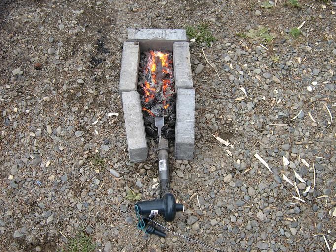 'Heat, this thing may be attracted to heat!'. Suddenly, a sly grin shone on Eizujeil's face. A well built forge was a great and necessary tool for any blacksmith, but it was impossible to carry when travelling, and that's why he suddenly remembered the makeshift quick-forge his uncle had taught him how to make in case he needed to temper anything on the fly. The process was simple, by placing a small 'U' shape out of brick, applying dry tinder and coals in the middle and facing the brick opening with a hand bellow, one could light the tinder and use there foot to apply air into the coals which would heat them up enough to allow for minor metal work.