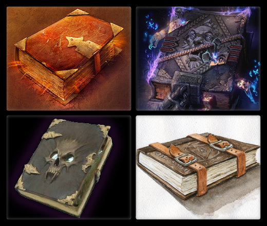 Necronomicon - This fabled and ill-fated text is bound with some kind of skin, and features a shifting demon face on the cover. The effects of the Necronomicon vary depending on the owner's chosen Path.