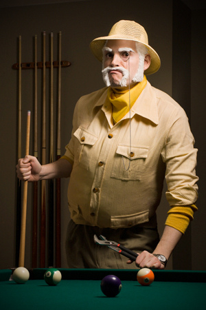 The other figures in the room gasp, and disappear as if only apparitions. The gentleman with his bushy mustache grabs a pool cue and approaches you quickly and with obvious aggression.