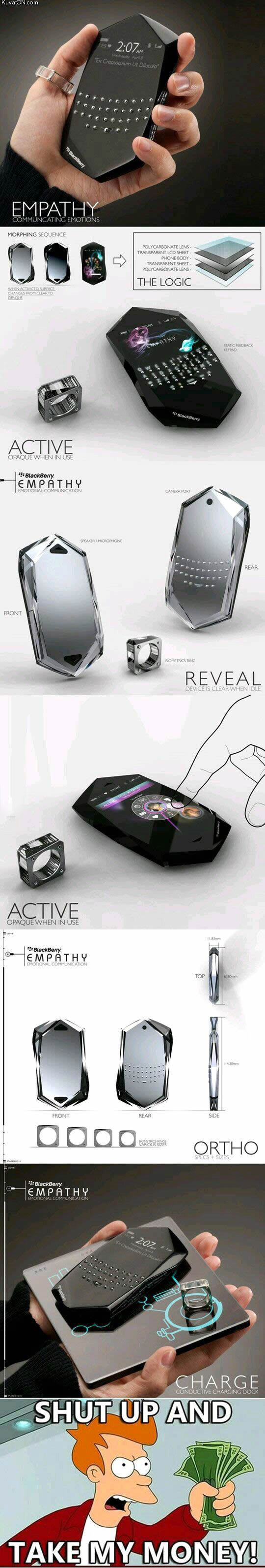 It's called the Empathy and what little I know of smartphones tells me blackberry aren't exactly big players in the market so it probably wouldn't function as neat as it looks, and the idea around it seems to be broadcasting your mood to your contacts etc so they know if it's a good time to call