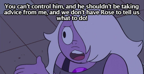 They think they’re failing him, just like he was worried he had done by leaving the statue behind. And Amethyst “internalized guilt is my middle name” continues along this train of thought: