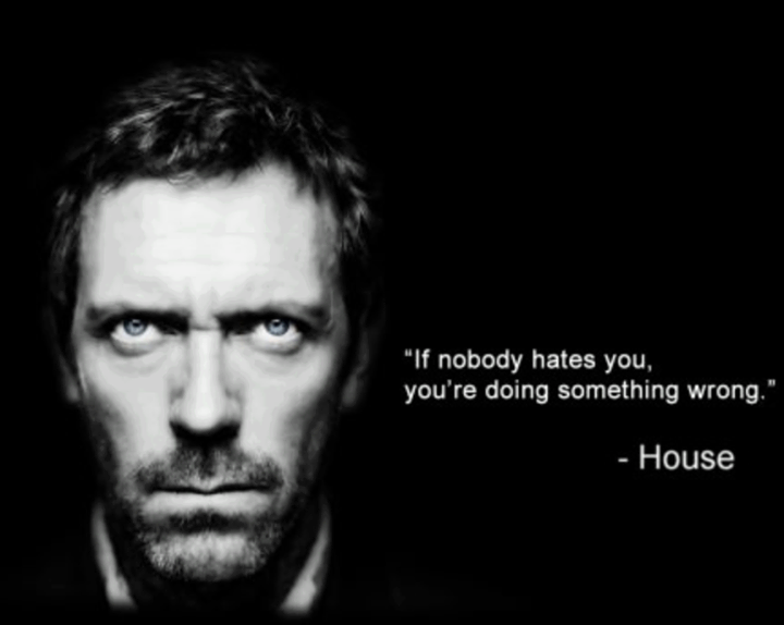 Oh Admin Flag konradkurze Channel: true-story (See more...) next random - Fav Favorite Comment ✖ Top NextComment if having noone hate you means youre doing something wrong....does being hated by everyone means youre doing it right? Admin....Hey....you were right all along next Tags: he gonna rage If nobody hates you, you' re doing something wrong." House ... +15 Views: 2538 Favorited: 0 Submitted: 10/20/2013 Share On Facebook -Favorite +Favorite Unsub from konradkurze Subscribe to konradkurze Subscribe to true-story Unsub from true-story