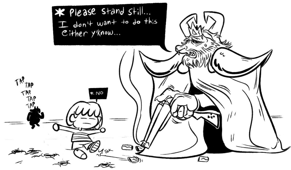 That being said, Toriel made up for almost all of this. She knew he was gonna be a begrudging puss, and decided to take **** into her own hands by preventing humans from even leaving the ruins. Her, Alphys, and the dog are the only ones that are befitting to rule the Underground. Everyone else is either too blood thirsty to see the big picture, or too pussy to take any risks to save the lives of their people.