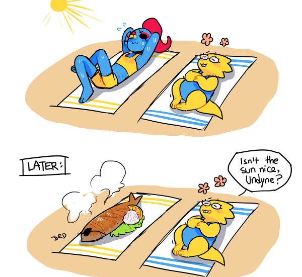 FISH ALSO DON'T HAVE ARMS, LEGS, HANDS, FEET, VOCAL CHORDS, HAIR, AND A STRONG SENSE OF JUSTICE. THEY ALSO AREN'T FRIENDS WITH TWO REALLY NEATO SKELETON BROS, THREE GHOSTS, THE HUMAN, A FLOWER (I GUESS), TWO... WHATEVER THE KING AND HIS CLONE ARE OFFICIALLY... AND IN A ROMANTIC RELATION WITH A NERDY REPTILE ALMOST ALL OF WHICH HAVE ACCESS TO INSANE MAGIC ABILITIES. YET, HERE WE ARE!