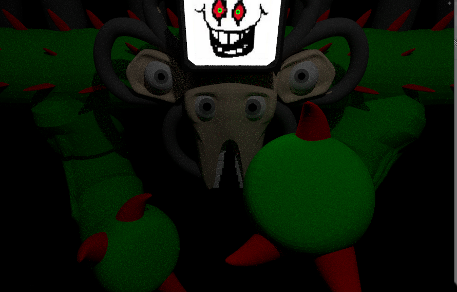 Needs to look more frightening. Either use some sharper colours or make the texture more rough. At this point it just looks like a child's toy in a dimly lit room